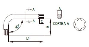O tipo de Chave Torx  apresenta o perfil do corpo em L o que possibilita o efeito de alavanca durante o aperto ou desaperto de parafusos, visando melhorar a ergonomia no trabalho, o acesso em locais difíceis e a velocidade na operação.