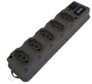Filtro de linha com proteção de fusível, utilizado em computadores,aparelhos elétricos e eletrônicos mais delicados.