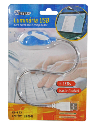 Luminária usb para computadores, notebooks com 05 leds de alto brilho.